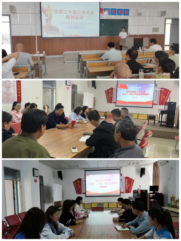 10月9日,教工党支部和学生党支部分别召开会议,学习传达党的二十届三中全会精神。学习好贯彻好党的二十届三中全会精神,是一项重大政治任务。通过学习宣讲,增强了广大党员、干部、师生学习宣传贯彻全会精神的思想自觉和行动自觉,提升党员干部的政治素养和教书育人能力,着力培养高素质高技能人才,为推进教育强国建设,实现学院高质量发展贡献新的、更大的力量。(撰稿:欧冠官方网站 韩宜君 审核:杨瑞侠)