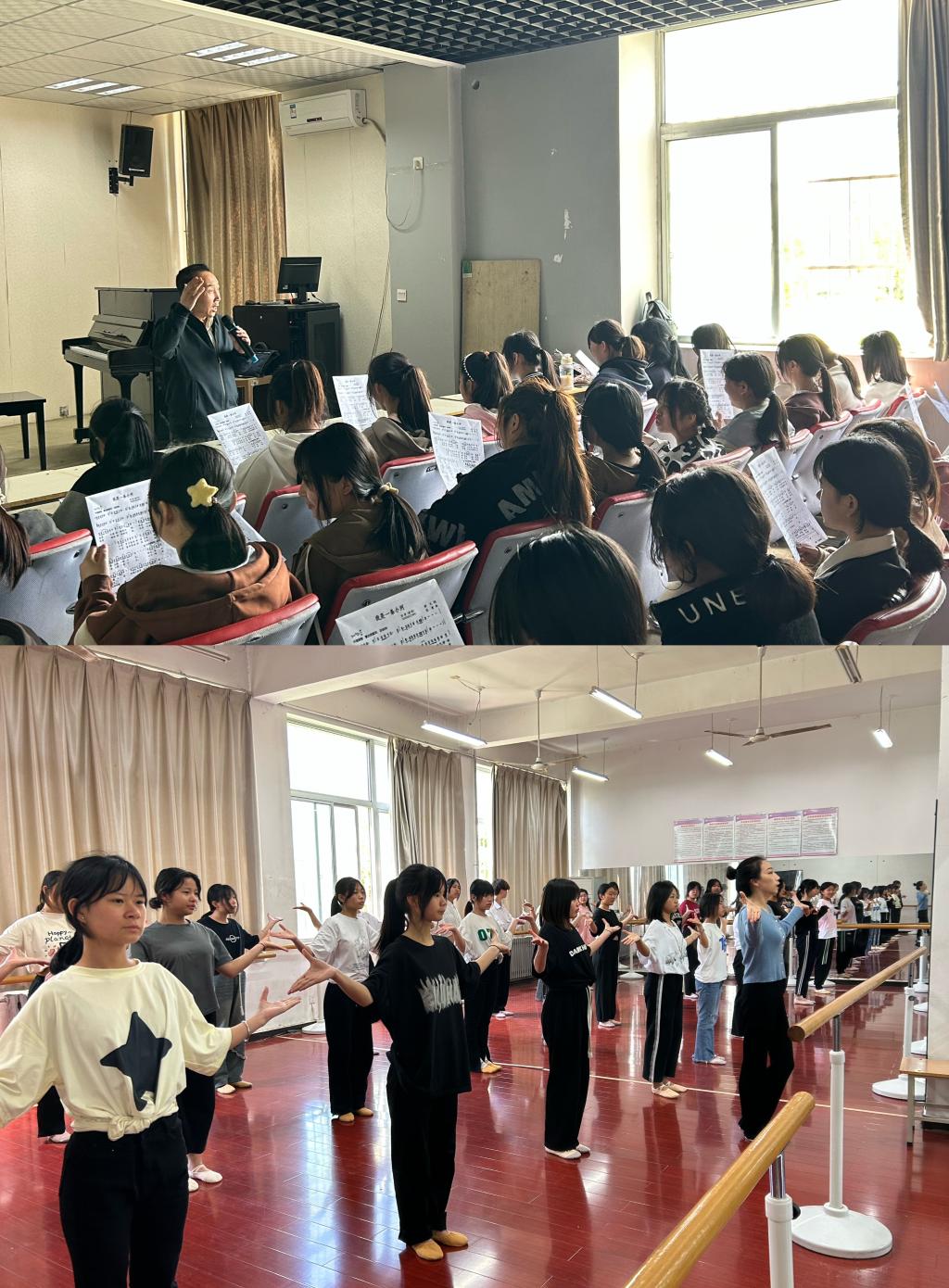 随后三天,研学师生深度体验了欧冠官方网站音乐教研室刘星、李磊、刘鲁艳、张圃丽等老师带来的声乐与钢琴课,舞蹈教研室黄雯、陈文文、张媛、闫鸽等老师带来的舞蹈创编、民族舞、健美操课等。课堂上,师生互动积极,气氛活跃,各位老师敬业的精神、扎实的专业素养获得了研学师生的高度赞誉。