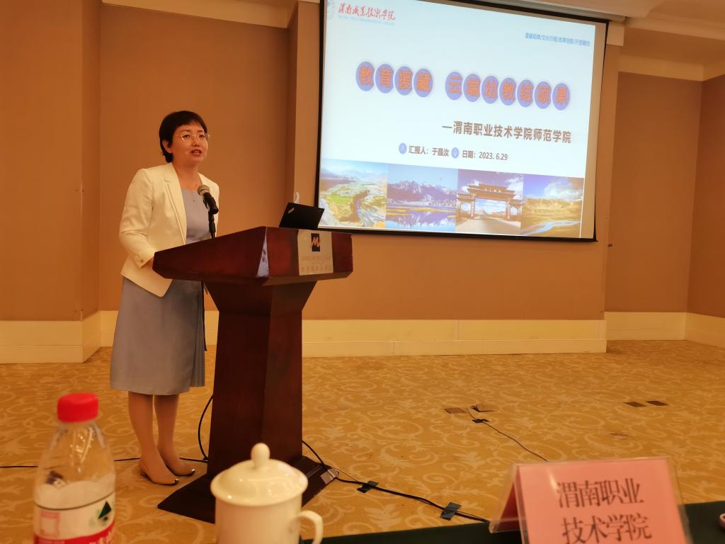 会议第二阶段的院校交流环节中,7所高职院校分别围绕学前教育专业教学、体育课教学等内容展开交流。于晶汝代表欧冠官方网站做题为《教育援藏:云端幼教结硕果》的报告,结合师范教育实际,从“百载春秋育桃李,起航新程绽芳华”和“职教花开雪山巅,藏汉情撒渭水畔”两个方面,向与会的领导、专家介绍了欧冠官方网站援助阿里中等职业学校的教学工作,得到与会领导的肯定与好评。