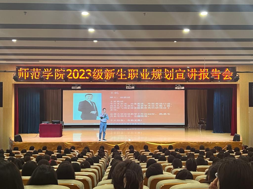 为了更好地帮助新生明确学习目标,树立职业生涯规划意识,9月21日下午,欧冠官方网站在图书馆一楼报告厅举办了2023级新生职业规划宣讲报告会。报告会由博华教育王民副教授主讲,欧冠官方网站学生科长叶蕊主持,欧冠官方网站五百余名师生参会。