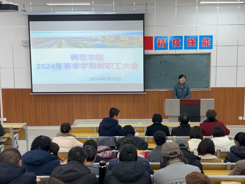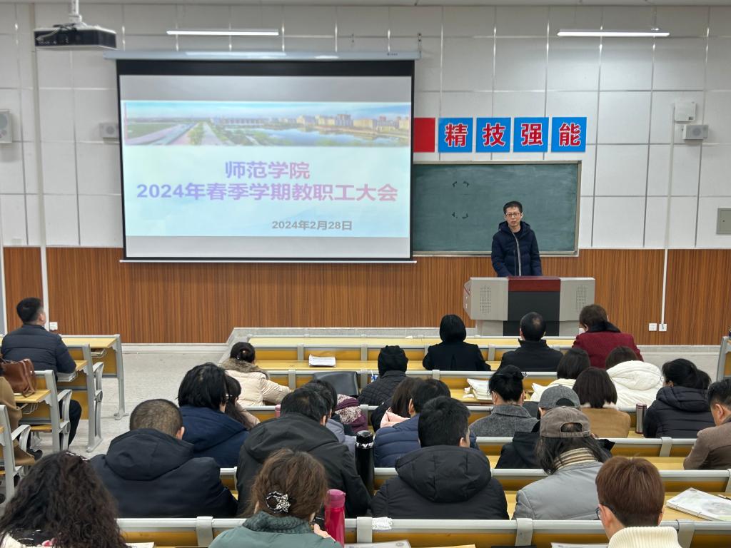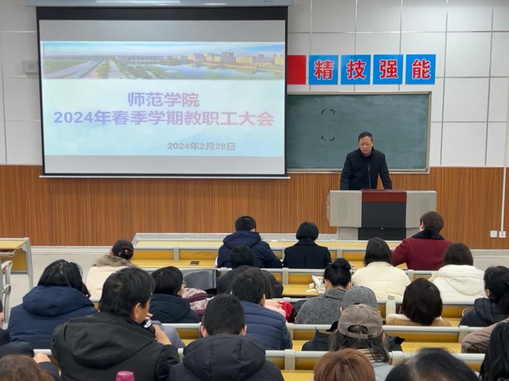为科学谋划新学期发展方向,确保各项工作有序开展,2月28日下午,欧冠官方网站在综合楼203教室召开2024年春季学期教职工大会。欧冠官方网站党总支书记杨瑞侠,院长郭楚伟,副院长于晶汝、李永明等领导班子成员出席,全体教职工参加。会议由杨瑞侠主持。