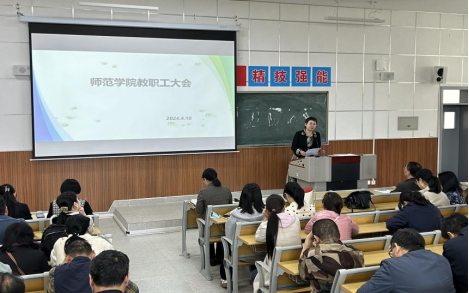4月10日下午,欧冠官方网站在综合楼203教室召开春季学期第二次教职工大会。欧冠官方网站党总支书记杨瑞侠,院长郭楚伟,副院长于晶汝、李永明等领导班子成员出席,全体教职工参加。会议由杨瑞侠主持。