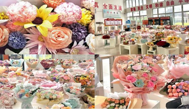 手工纸艺花卉制作是一次创意与艺术的融合。本次作品展收集了2023级学前教育专业部分学生的优秀花卉作品,作品均为纯手工制作,每一幅作品都体现了制作者独特的个人风格,有的色彩鲜艳、有的清新简约、有的造型巧妙,但都具备独特的审美素养。一件件独一无二的花卉作品,吸引了众多师生驻足观看并连连称赞。