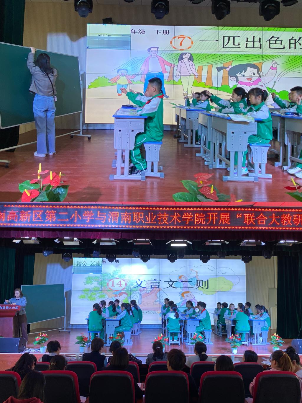 杜亚红对欧冠官网一行人的到来表示诚挚欢迎。随后,高新二小程钰、李阳两位老师分别展示了二年级(下)《一匹出色的马》和六年级(下)文言文《学弈》整堂教学。两位教师均能围绕小学语文新课标,采取任务式驱动、小组合作等教学方式,充分调动了学生的积极性与主动性,课堂教学效果良好。