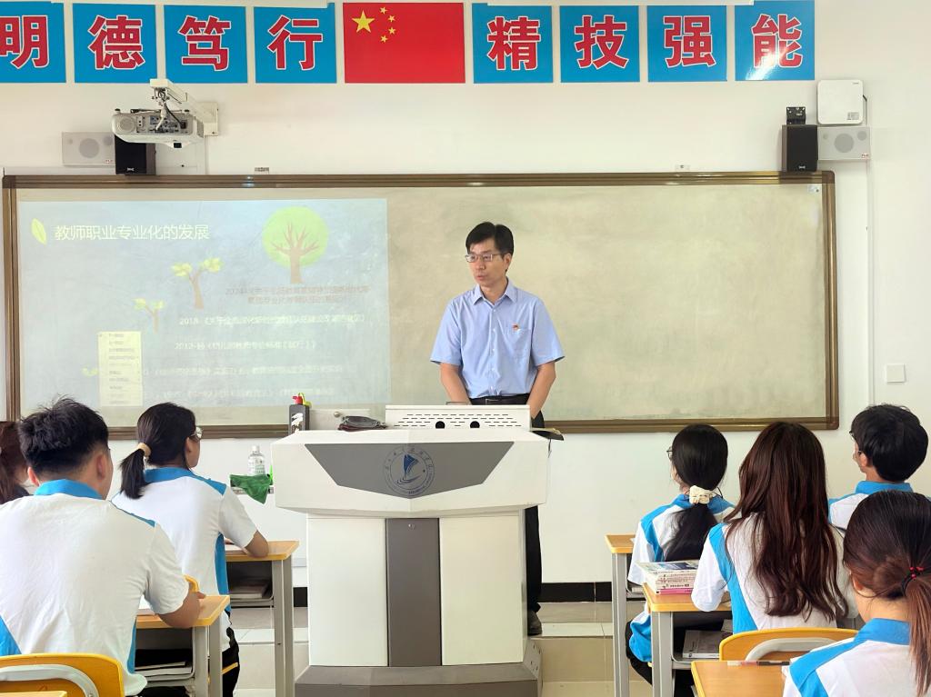 9月2日秋季学期第一节课,院长靳华锋深入联系单位欧冠官方网站,听取了学前高职2301班孙蕾飏老师的《教师职业道德与教育政策法规》课。听课结束后,靳华锋联系国家最新教育政策和欧冠官网红色校史,鼓励同学们从中汲取奋进力量,认真学习,苦练技能,做一名新时代党和人民满意的好教师,为中华民族伟大复兴奉献青春年华。