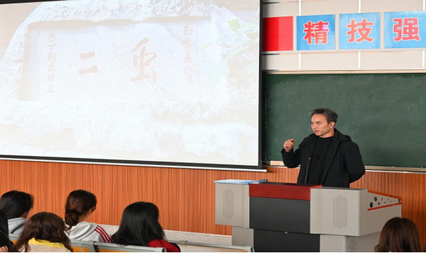 罗小平通过深入浅出、生动专业的讲解,剖析了书法的审美艺术,并分享了他自己在书法创作过程中的宝贵经验和体会,使听众领略了书法艺术的丰厚价值和文化承载。他强调,书法艺术不仅是中华优秀传统文化中一颗璀璨的明珠,更是作者修养境界、内心感受与生命体验通过笔墨技巧的精妙外化。它融合了传统文化的精髓,承载着深厚的道德观念与审美追求,体现了中华民族独有的精神风貌和审美情趣。他希望学习书法的同学和爱好者能够深入挖掘书法艺术背后的文化底蕴,通过书法学习提升笔墨技艺,同时在此过程中陶冶性情,培养高尚意趣,成为具有深厚文化底蕴和独特艺术见解的书法传承者。他鼓励大家将书法视为一种生活态度,通过书法与古人对话,与自然共鸣,让书法艺术成为连接个人内心与外部世界的桥梁,不断传承和发扬这一中华优秀传统文化。