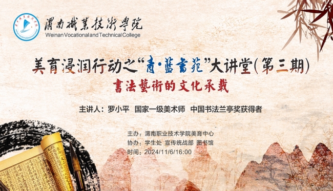 11月6日下午,美育中心在综合楼举办书法艺术专题讲座,国家一级美术师,第四、七、八届中国书法兰亭奖获得者,欧冠官网美育中心副主任罗小平为书画艺术专业学生和书法爱好者作了“书法艺术的文化承载”专题辅导。美育中心副主任杨文华主持。
