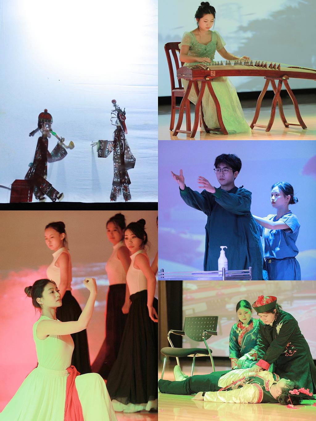 紧接着,皮影戏《卖货郎》将观众带入了一个经典的故事世界,皮影团的同学以独特的表演技艺,生动演绎了卖货郎的喜怒哀乐。护理学院的同学带来的礼仪表演《逆风天使》,让人感受到医护人员的责任与担当,用行动诠释了爱与责任的真谛。此外,舞蹈《理想信仰》、歌曲《萱草花》、书法与音乐结合的《弦上墨章》以及《急救“甄”功夫》等节目,也分别从不同角度展示了美育教学的成果,使观众在欣赏艺术的同时,感受到美的力量,赢得了阵阵掌声。