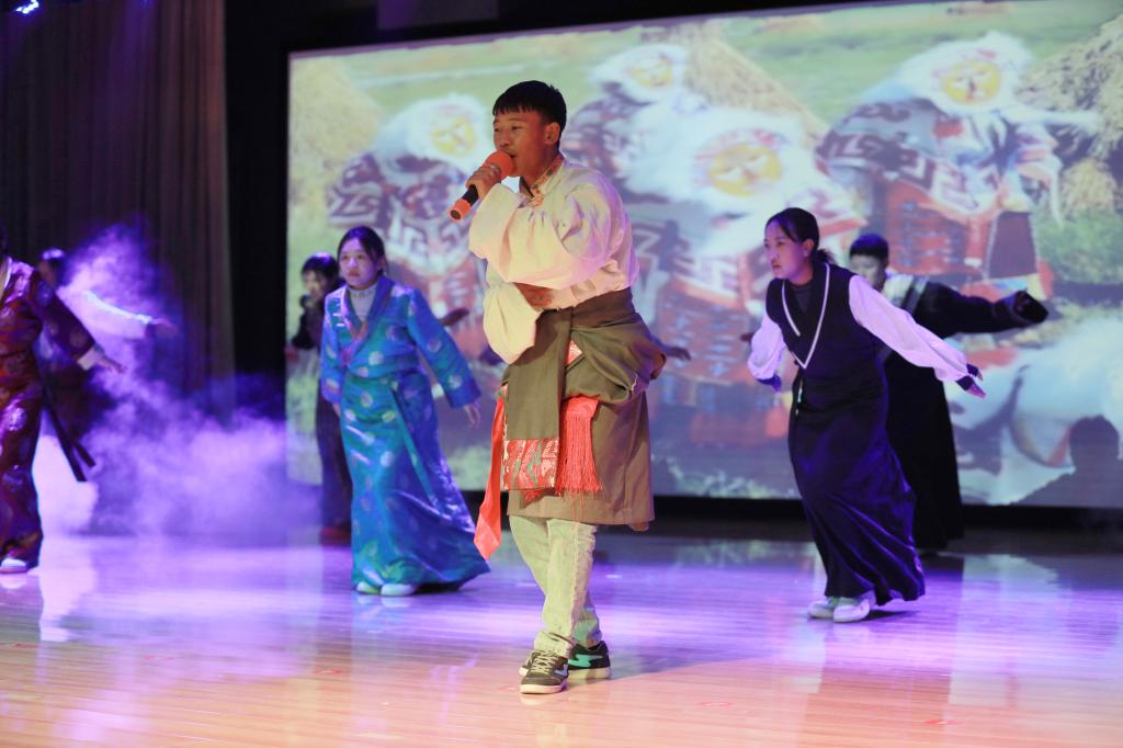 来自西藏阿里班的同学带来了充满民族和地域特色的歌舞表演《故乡羌塘牧区》,悠扬的歌声和淳朴的舞蹈再现了西藏的独特风情。