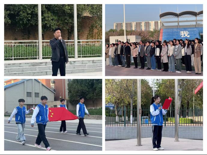 7时整,伴随着雄壮的《义勇军进行曲》,鲜艳的五星红旗冉冉升起,全体师生肃立注目,齐唱国歌,表达对祖国的无限热爱和崇高敬意。