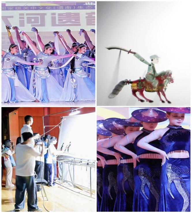 活动在欧冠官网学生表演的民族舞蹈《天浴》中开启。随后,宁夏的吴春杨、光素、赵畹茹,青海的贾瑞芸,甘肃的牛恬恬,陕西的韩文学、苏峰、王莹等8位宣讲团成员登台,为现场观众带来了一场别开生面的非遗盛宴。他们分别讲述了宁夏八宝茶的制作流程、宁夏手工毯的指尖技艺、宁夏滩羊的美食文化以及青海土族盘绣的绚丽多彩、甘肃环县道情皮影的优美唱腔和陕西仓颉造字的传奇故事、黄帝陵的文化意义和渭南丰富的非遗资源,从传统技艺的精湛呈现到文化象征的深刻解读,全方位、多角度地展现了黄河流域非物质文化遗产的独特魅力,令现场观众为之陶醉,掌声此起彼伏。欧冠官网皮影社团的学生也登台献艺,表演了皮影剧《抗战之歌》,生动展现了抗日战争时期先辈们英勇无畏、保家卫国的英雄事迹,体现了欧冠官网在非遗传承与教育方面取得的成果。