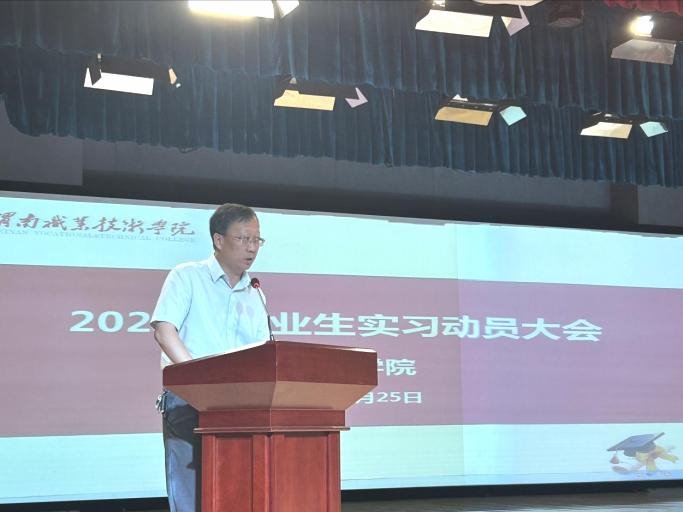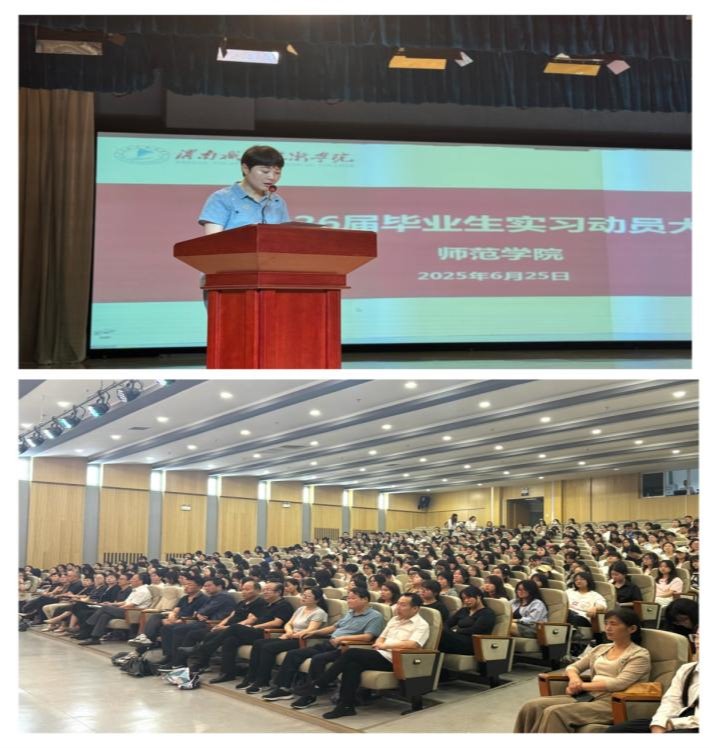6月25日上午,欧冠官方网站在图书馆报告厅召开了2026届毕业生实习动员大会。党总支书记杨瑞侠,院长郭楚伟,党总支副书记黄翠萍,副院长于晶汝、李永明,团总支书记左馨,实习指导教师代表及1000余名2026届毕业生参会。大会由黄翠萍主持。