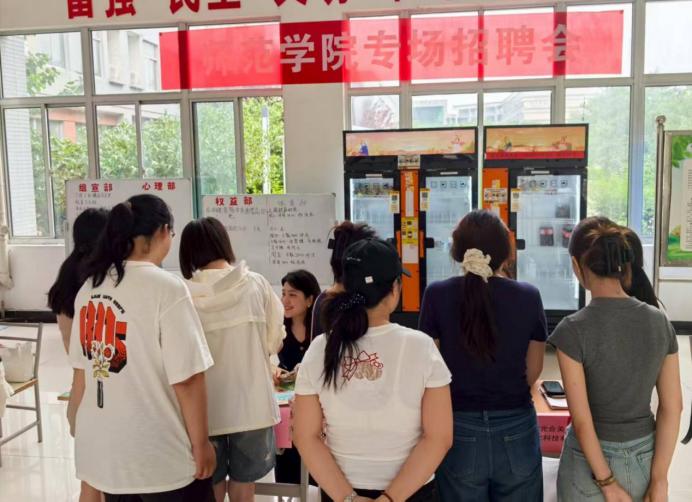 招聘会现场气氛热烈,共有10余家用人单位参会,涵盖教育、传媒、文化创意等多个领域 ,为毕业生提供了丰富多样的就业岗位。招聘会上,毕业生们手持精心准备的简历,穿梭于各个展位之间,积极与用人单位沟通交流,了解企业概况、岗位要求和职业发展前景,并结合自身专业和兴趣投递简历。不少同学在现场就与用人单位达成了初步就业意向。