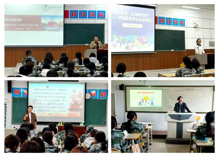 介绍会上,各教研室主讲教师分别从专业建设、师资团队、就业方向等方面展开系统的讲解。小学教育教研室主任王泉珍强调,本专业致力于培养热爱教育事业、具备扎实理论知识与娴熟教学技能的优秀小学教师。学前教育教研室主任汪梅介绍了该专业“保教结合、艺术见长”的特色,注重学生实践能力与艺术素养的全面提升。书画艺术专业教研室主任高阳则阐述了其传承与创新并重的培养理念,旨在培育具备扎实书画功底与创作能力的专门人才。早期教育专业教师李青香详细解读了如何科学引领0-3岁婴幼儿全面发展,突出了专业的科学性与前瞻性。