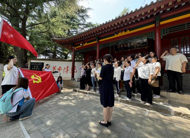 在渭华起义纪念馆前,教学科科长、学院思政课教师裴昉为各位党员详细讲解了渭华起义爆发的历史背景、主要经过等内容,帮助大家感悟革命烈士悲壮英勇的动人事迹,切身感受先辈们的革命精神。学生科科长叶蕊带领全体党员面向党旗,重温入党誓词,在铮铮誓言中铭记初心,汲取奋进力量。宣誓结束后,党总支书记杨瑞侠以《让心存敬畏、手握戒尺真正成为日常自觉》为题,结合一些典型案例为全体党员上了一堂鲜活生动的党课。她提醒广大党员要在工作和生活中时刻以党员标准严格要求自己,切实发挥党支部的战斗堡垒和党员先锋模范作用,增强党组织的创造力、凝聚力、战斗力,为推进学校高质量发展做贡献。